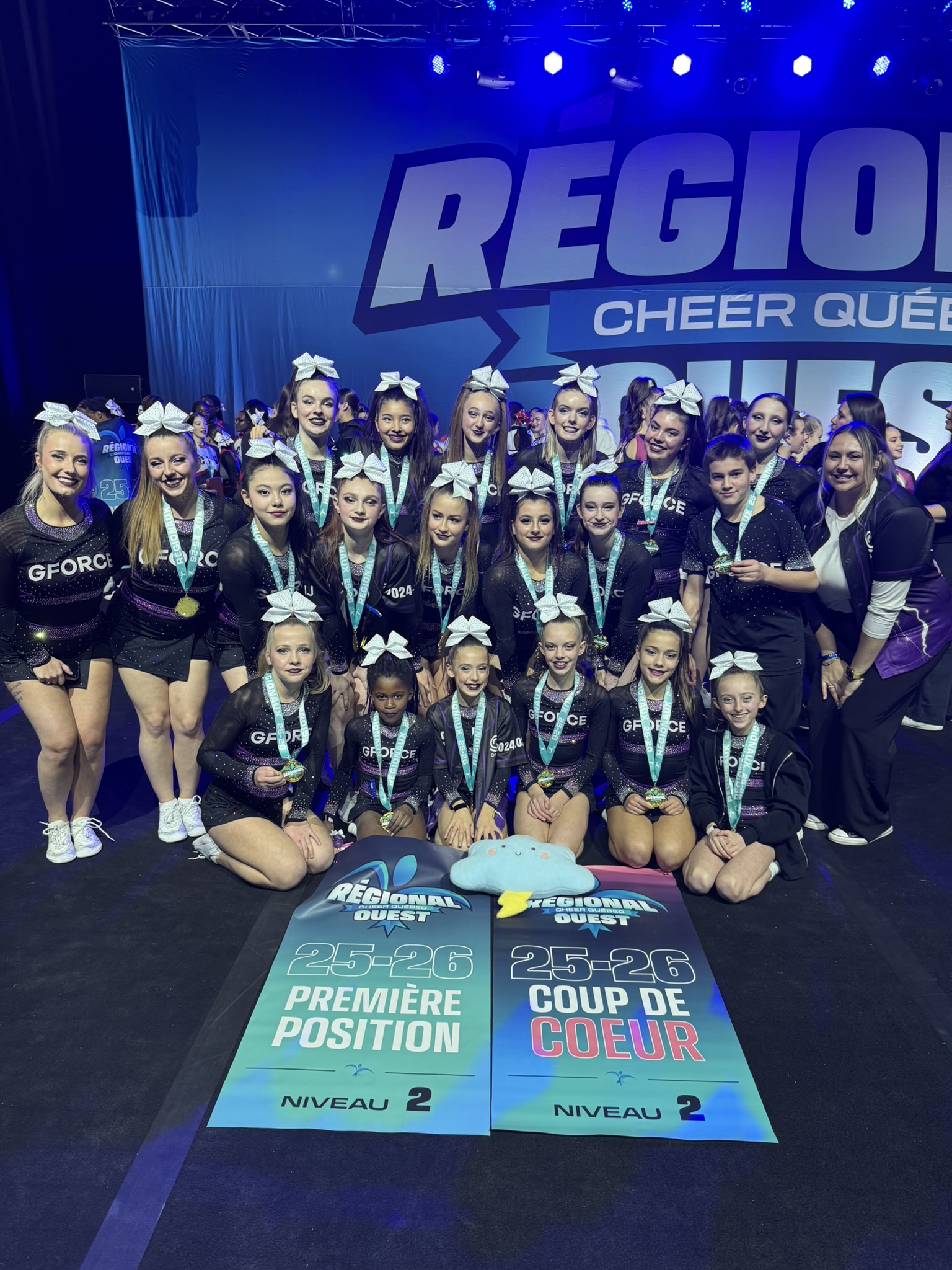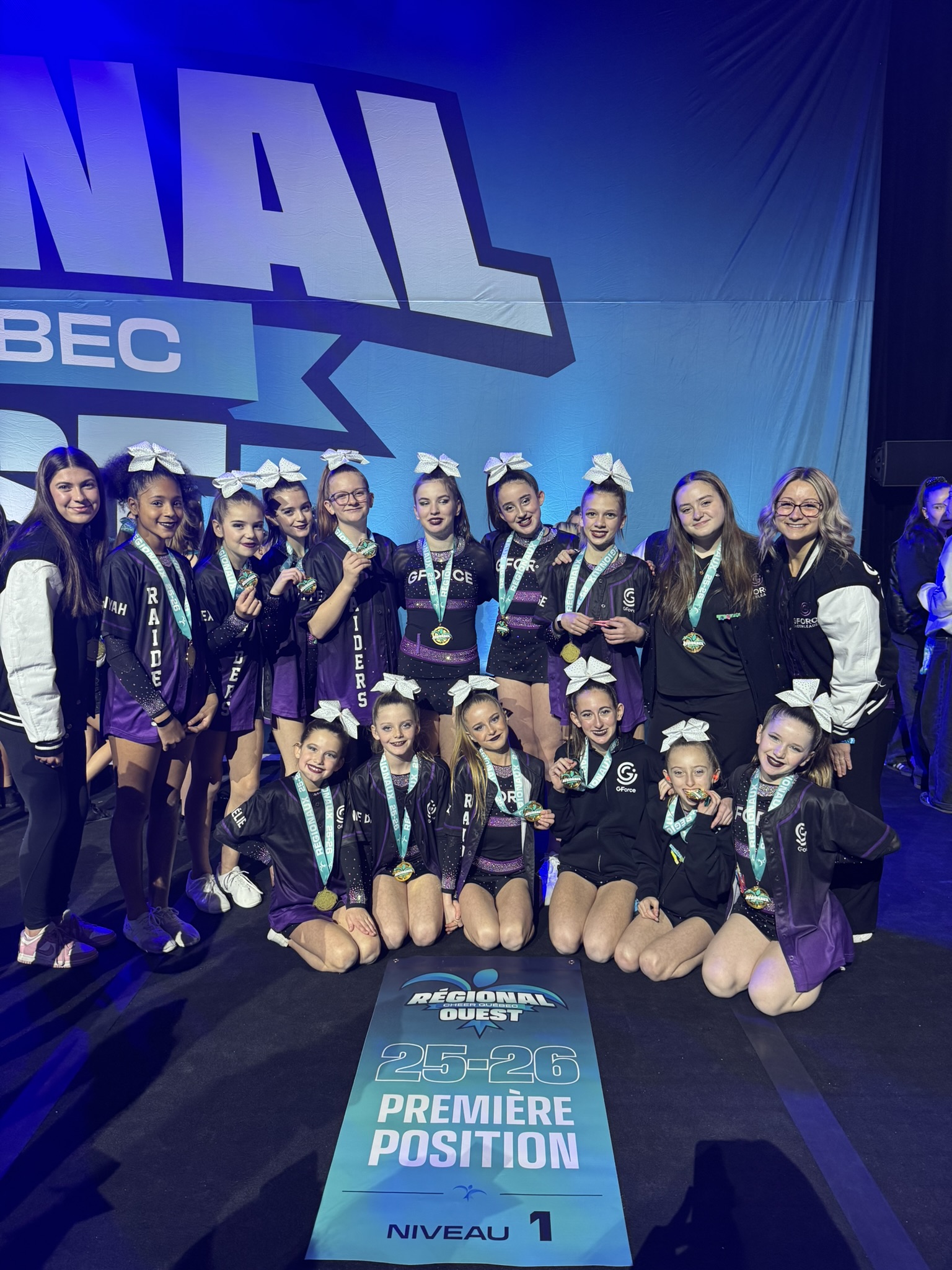 Le dimanche 14 décembre, les équipes de cheerleading du G-Force étaient en action lors du Championnat régional Ouest, présenté au Complexe JC-Perreault à Saint-Roch-de-l’Achigan. Quatre équipes du club ont pris part à la compétition et ont livré des performances solides, marquées par plusieurs podiums et reconnaissances des juges.