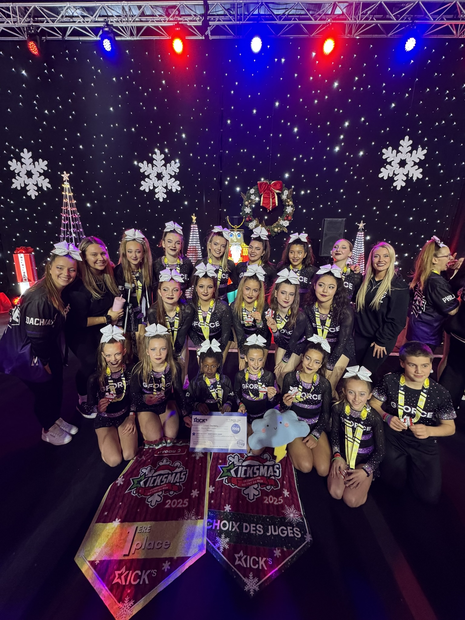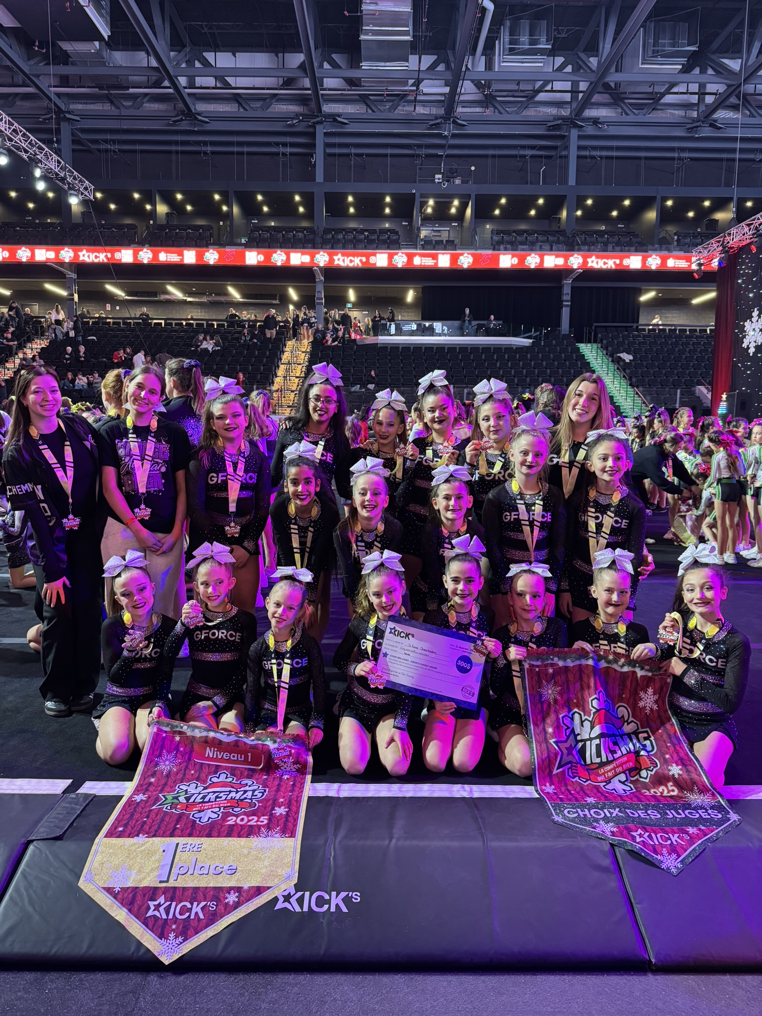 Le samedi 6 décembre, au Centre Slush Puppie de Gatineau, les équipes compétitives de cheerleading du programme GForce ont offert des performances remarquables lors de la compétition Kicksmas, organisée par Kick’s Cheer. Une fois de plus, le programme a démontré toute sa force et son excellence.